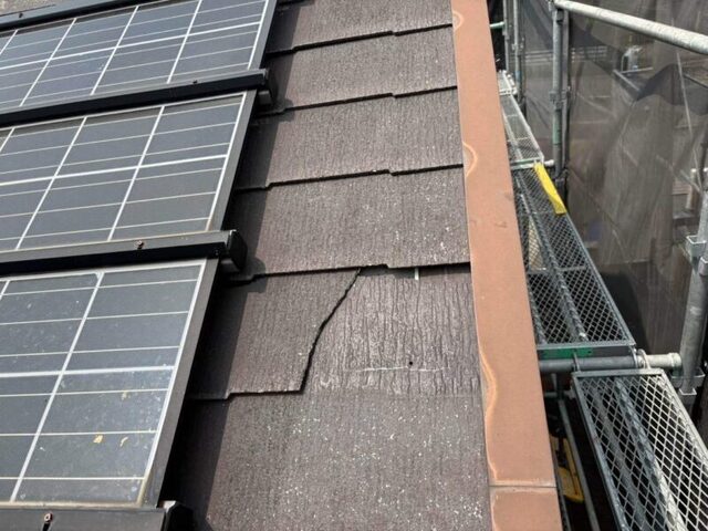 割れている屋根材の補修を行いました。