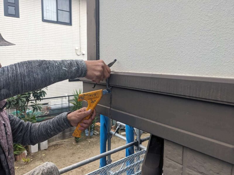 ならし作業はヘラを使って行います。【既存シーリング撤去】