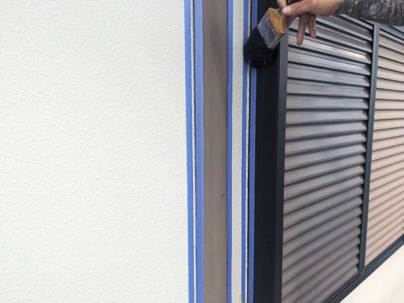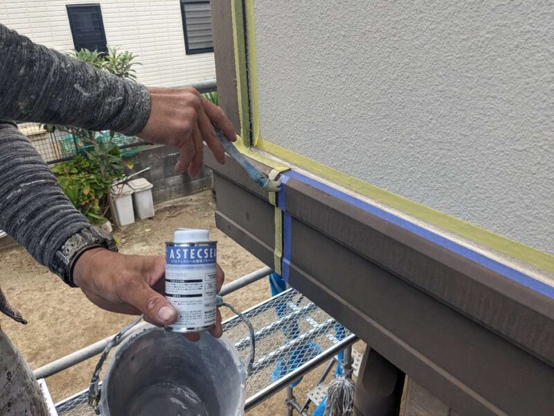 シーリング材の密着性を高めるためにプライマー塗布を行います。【シーリング充填】