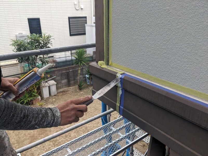 プライマーとは外壁材とシーリング材をくっつけるいわばボンドのようなものです。【シーリング充填】