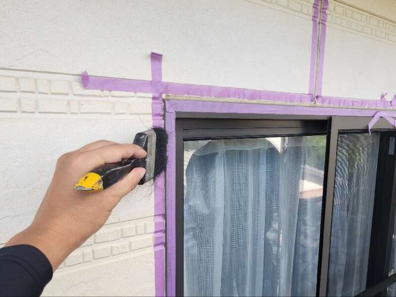 清掃からおこないます。【サッシ廻り】プライマー塗布