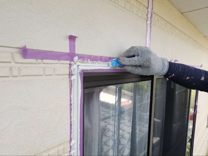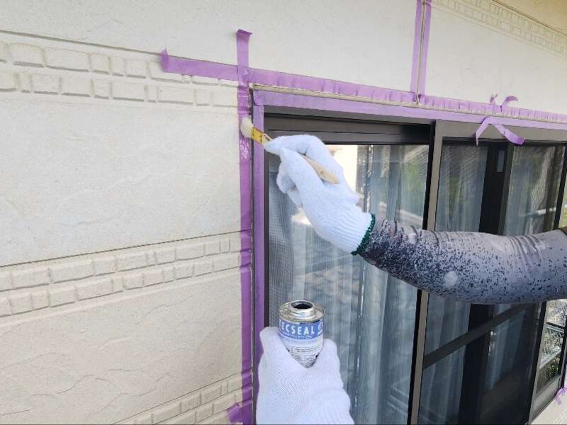 プライマーを塗布し、シーリングの密着性を高めます。【サッシ廻り】シーリング充填