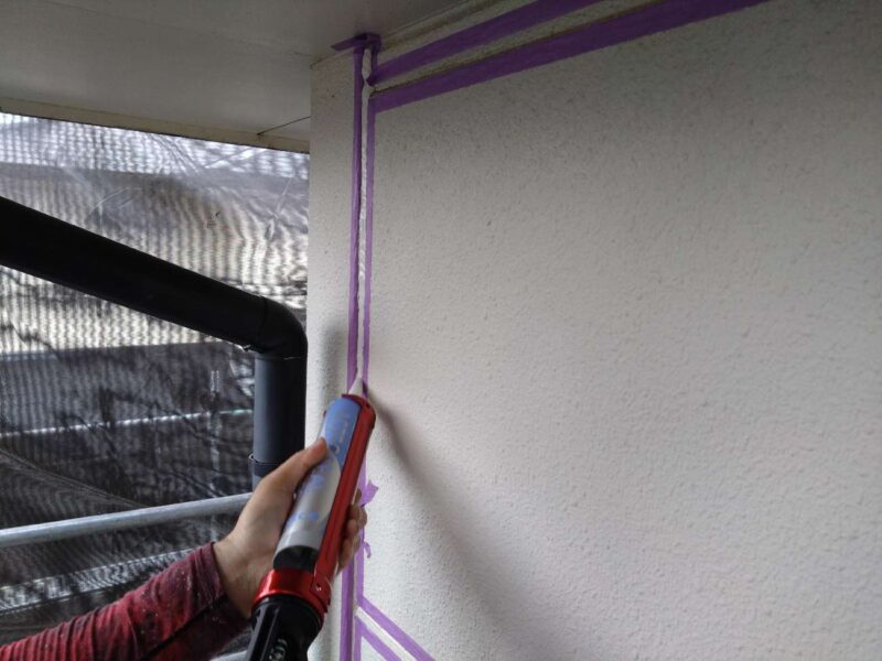 養生テープを貼り不要な箇所にシーリング材がつかないようにする為と、仕上がりを良くする為に行います。
