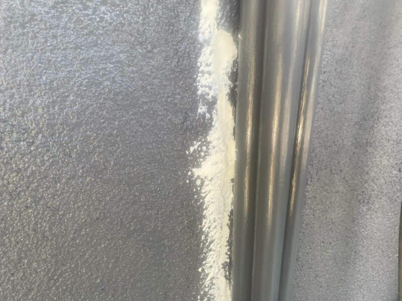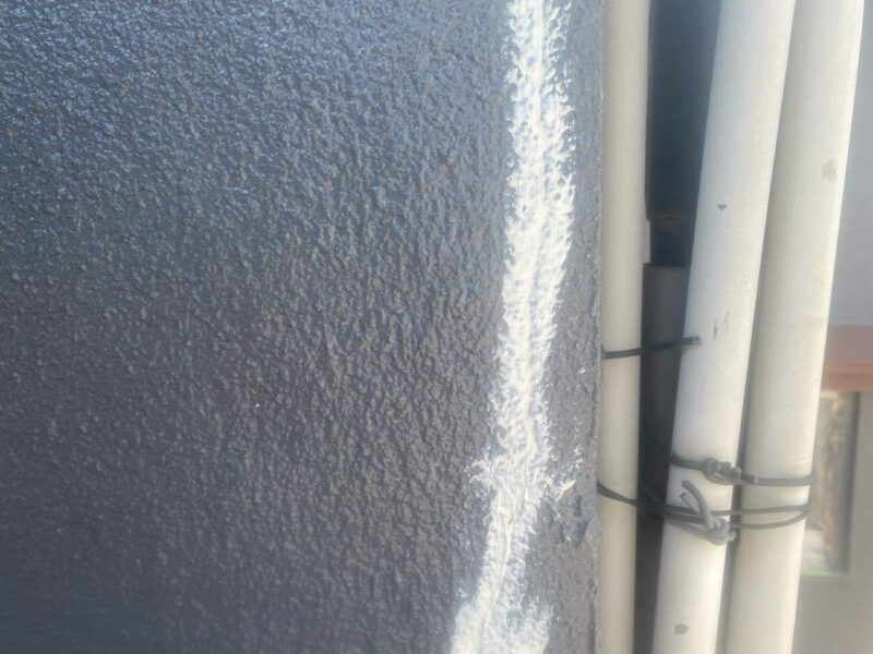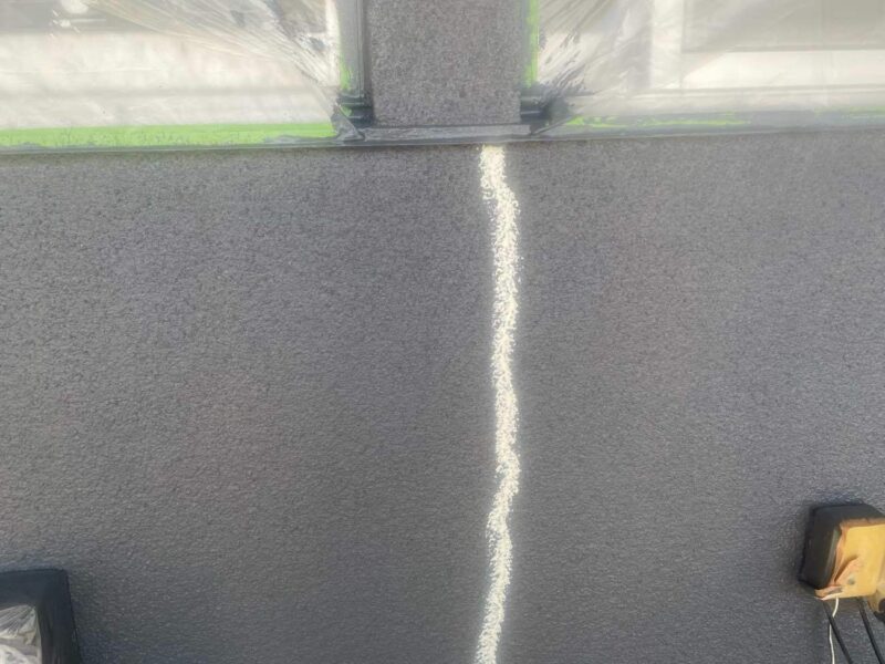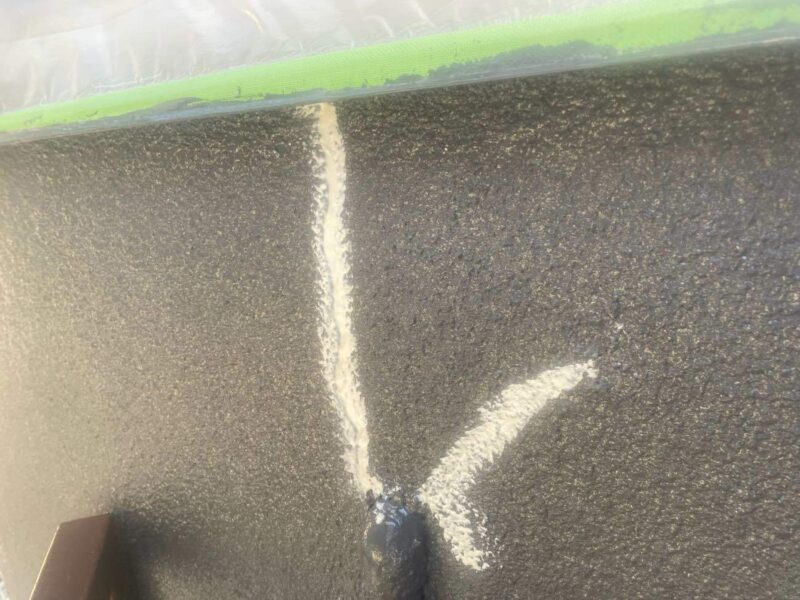 外壁のクラック部にコーキング材を充填し、気密性や防水性を確保するための下地処理です。