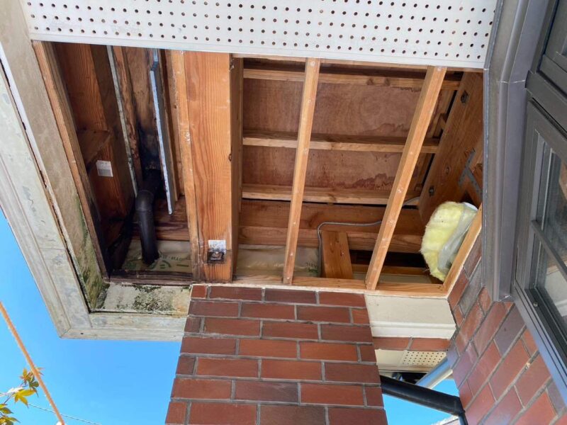 腐敗して穴が開いてしまった部分の補修を行いました。