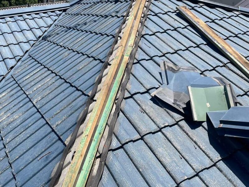 屋根の頂部にある棟板金を新しいものに交換する作業を行わせてもらいました。