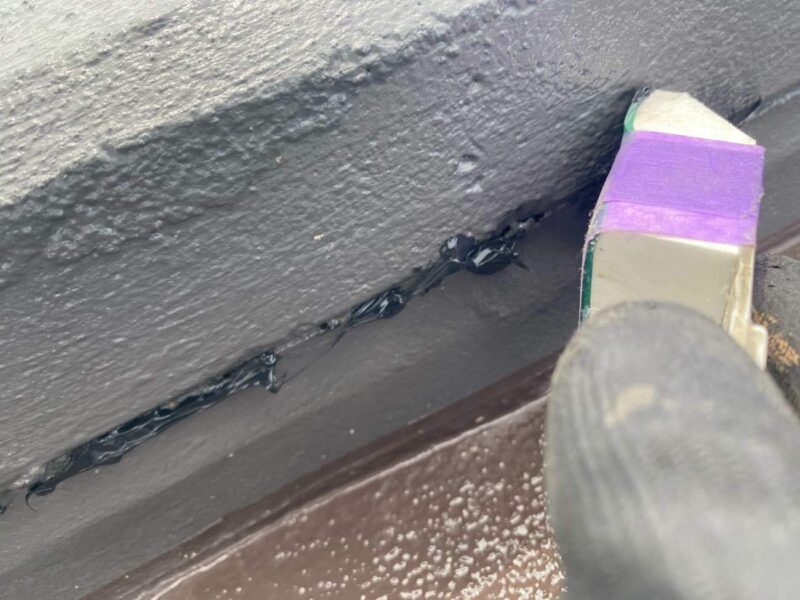 屋根のケラバというところの立上り部分に隙間が発生していたので、補修工事を行いました。