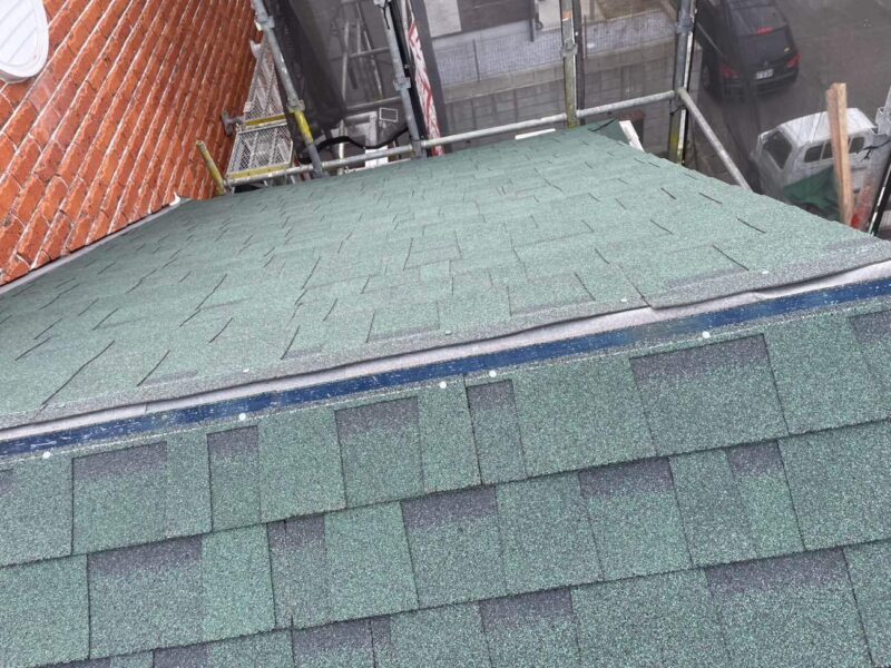 アスファルトシングルの屋根材でカバー工事をおこないました。