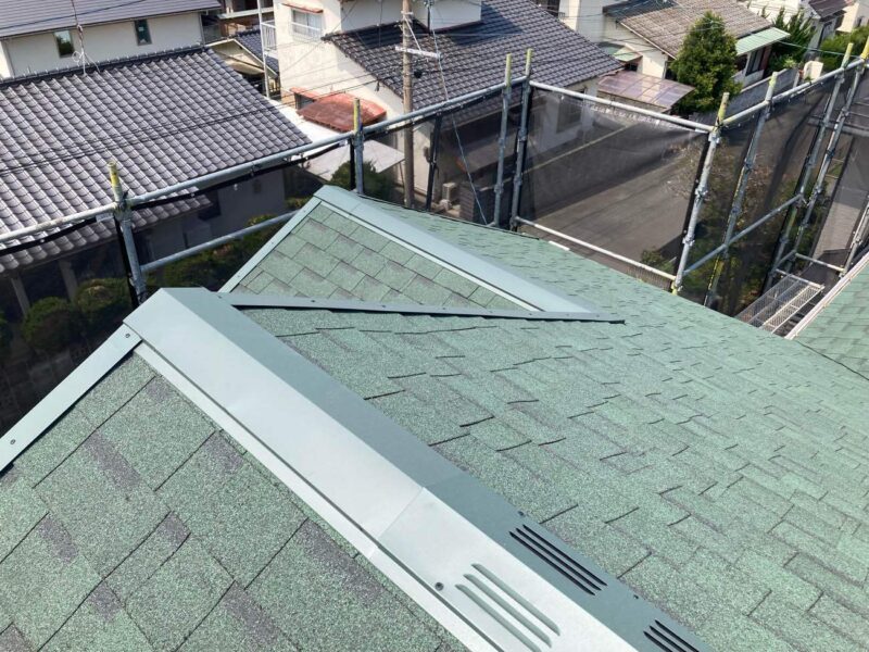 最後に棟板金を取り付けたら、施工完了です\(^o^)/