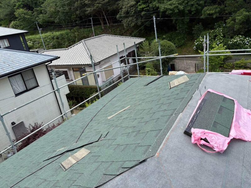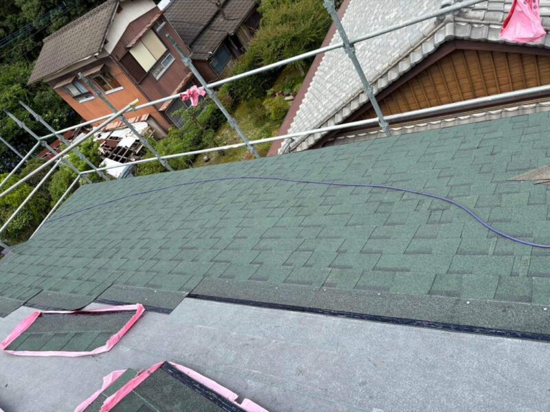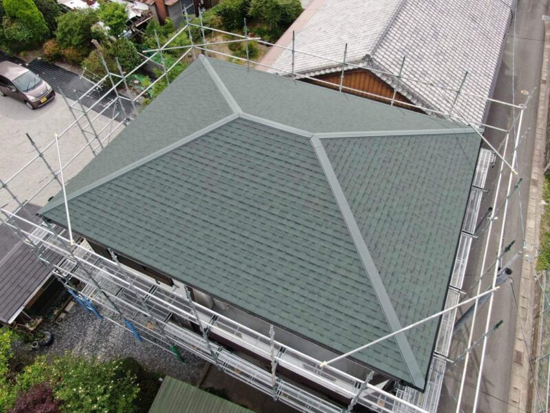アスファルトシングルの屋根材でカバー工事をおこないました。